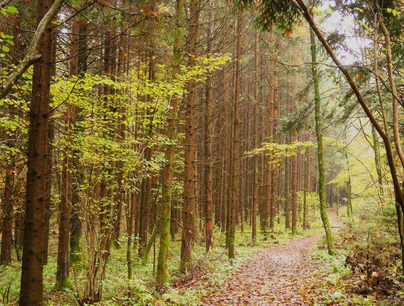טיילנו ברגל בתוך יער בשלכת מתקדמת, בין גזעי עצים ערומים