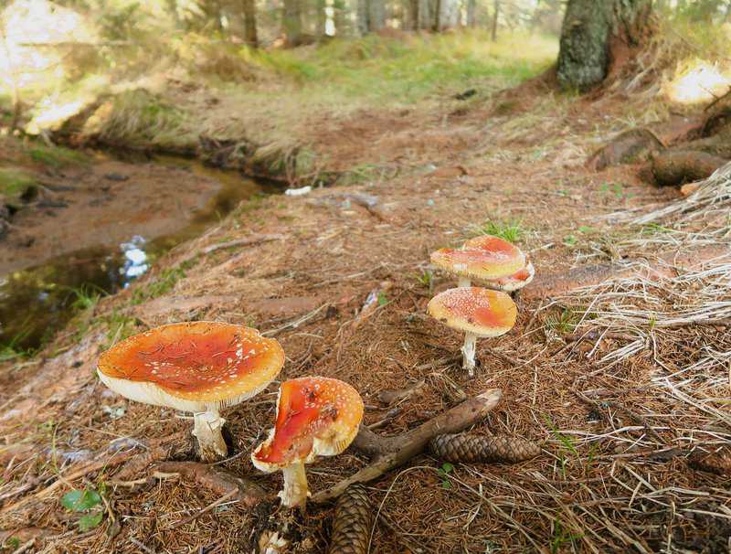 עברנו במעיין במעלה ההר, צפינו בשלל פטריות ובהן פטריות הרעל המנוקדות באדום ולבן