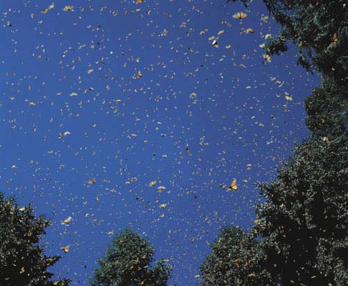 נדידה ססגונית במיוחד היא נדידתם של פרפרי הדנאית המלכותית (Monarch Butterfly) ביבשת אמריקה. בזמן הנדידה נצבעים השמים בצבעי הכתום והשחור המעטרים את כנפיהם של כ-300 מיליון פרפרים. בין החודשים אוגוסט לאוקטובר עושים הפרפרים את דרכם דרומה, בנחילי ענק, מקנדה וצפון ארצות הברית אל עבר יער אוימל שבמרכז מקסיקו.