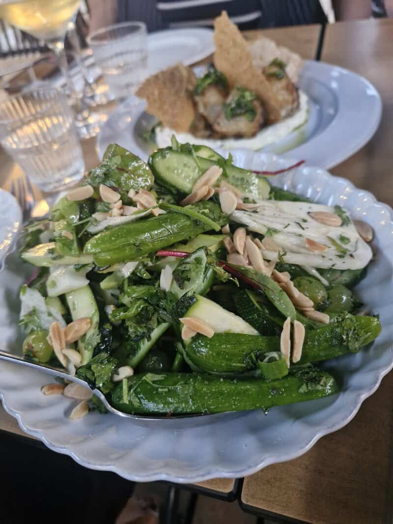 המנות כאן נדיבות, חומרי הגלם מקומיים ועונתיים וכאמור, התמחור הגיוני, ודאי בהשוואה למחירים בתל אביב. אל השולחן שלנו, שעמד מתחת לעץ הפקאן בגינה, הגיעו מנות מצוינות, בהן קולורבי מדורה עם יוגורט פיסטוק וטוויל פריקי ופרוסות של אנטריקוט לצד פירה עם חמאה וכמהין שנמס בפה. חלומי לא פחות, אחדים מאיתנו חשבו שאף יותר, היה רביולו תרד מעלי פסטה שנעשים במקום ואשר ניצח בקלות את הרביולי שתפגשו ברוב המסעדות האיטלקיות המקומיות. לקינוח טעמנו גלידת חלבה ביתית מצוינת ופונדו שוקולד שתוכו החמים והנוזלי גרר קולות צהלה מצד המכורים לשוקולד שבינינו.