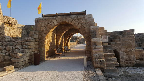 במהלך הסיור לאורך הביצורים, שנבנו במאה ה-13, פוסעים המבקרים מאות שנים אחורה בזמן, לתקופת ימי הביניים ומסעות הצלב. ניתן לגעת בנדבכי החומה המשוחזרים, להציץ דרך חרכי הירי ולרדת דרך מנהרת הגיחה המסתורית, אשר שימשה את האבירים הצלבנים ברדתם אל החפיר המקיף את הביצורים כדי להביא אספקת מזון ותחמושת. לדברי מנכ"ל החברה לפיתוח קיסריה, מיכאל כרסנטי, עבודות השחזור וההנגשה תוכננו במיוחד כדי לאפשר להולכים לאורך הטיילת המשוחזרת להיחשף לפריטי תוכן ואמצעי המחשה – הצצה מוחשית לעברה המפואר של העיר שחיברה דתות, תרבויות ויצרים של שליטים וכובשים.