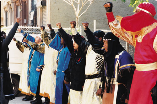 האיזראליטית, רחוב אחד מהכנסייה עצמה. זו הקבוצה שיוצאת ל"מחנה" טיימס סקוור. האיזראליטים אוהבים את העגה הצבאית. כל גזרת הטפה נקראת "מחנה" (Camp), כל אחראי שטח הוא "מפקד" (Commander) וכולם כמובן "חיילים". בימי השבוע הם אזרחים מן השורה שמתפרנסים מעבודות שגרתיות, לכן הפעילות מתקיימת בעיקר בערבים ובסופי שבוע, כשהחיילים בחופשה. טיימס סקוור היא אולי האתר שעימו מזוהים האיזראליטים יותר מכל מקום אחר. זוהי גזרת הפעולה המועדפת עליהם: הרבה עוברים ושבים, הרבה תיירים, סיכוי לא קטן שמישהו יעצור לשמוע את המסר. לשומע המזדמן – בעיקר הלבן, במיוחד היהודי ועל אחת כמה וכמה הישראלי – לא ברור מה עדיף, לצחוק או להתרגז. המסר הוא תערובת ביזארית של פרשנות סהרורית לתנ"ך, שנאת לבנים, שנאת יהודים ותחושה כללית של פרנויה. האיזראליטים טוענים שהם בני ישראל האמיתיים, ואילו היהודים אינם אלא מתחזים. בהקשר זה האיזראליטים אוהבים לצטט את הסיפור המקראי על יעקב שלקח את הבכורה מעשו, כשהם בתפקיד יעקב, כמובן. לשיטתם, "השבטים האבודים" אינם אבודים כלל. הם נמצאים ברחבי אמריקה הצפונית, הדרומית והמרכזית, ונקראים בטעות שחורים והיספאנים. בני שבט יהודה הם אפריקאים־אמריקאים, בני בנימין – שחורים מאיי הודו המערבית (West Indies), לוי הם בני האיטי, שמעון – דומיניקנים, זבולון – היספאנים מגווטמאלה עד פנמה, אפרים – פורטוריקנים, מנשה – קובנים, גד – אינדיאנים מאמריקה הצפונית, נפתלי – ארגנטינאים וצ'יליאנים, וכן הלאה. ומיהם היהודים? אלה, טוענים האיזראליטים, הם בכלל בני אֱדום, שהם כידוע מצאצאי עשו. אחרי הגליית בני ישראל האמיתיים, כלומר השחורים, מארץ כנען (שלפי התפיסה הגיאוגרפית האיזראליטית אינה שוכנת באסיה, אלא דווקא בצפון מזרח אפריקה), סיפחו האדומים את התרבות העברית לעצמם. בהמשך הם היגרו לאירופה והתערבבו עם בני העמים האירופיים, בעוד בני ישראל האמיתיים נמכרו לעבדות באפריקה. זה ההסבר, לדעתם, לצבעם הבהיר של היהודים ולצבעם הכהה של "בני ישראל". כבר במפגש הראשון שלי עימם היתה בינינו היתקלות סביב הנקודה הזאת. עמדתי והקשבתי להטפות שלהם, מנסה להחליט מה מופרך ומגוחך יותר, המלל או הבגדים. בשלב מסוים משכתי את תשומת ליבו של אחד המטיפים. את שלב השם הפרטי עברנו בשלום ("שאול, כמו המלך שאול בתנ"ך"), אבל כשהגענו לנושא הלאומיות, כבר לא עזר לי כלום, אפילו לא העובדה שפירוש שם המשפחה שלי ביידיש הוא "שחור". "מאיפה אתה?" "ישראל". "אוהו… ישראל… אתה ישראלי? מה זה ישראלי?" "אחד שבא ממדינת ישראל". "ומנין ההורים שלך באו?" "מגרמניה ומפולין". "אשכנזי?", אמר במבטא אמריקאי, במלרע. "כן", עניתי. "אשכנאצי", תיקן אותי. 11 סניפים וארגון משוכלל מחלקת ההסברה של האיזראליטים נותנת הנחיות ברורות לטקסי התעמולה המתנהלים ברחובות: אחד עומד על הבמה ומצטט פסוקים מהתנ"ך ומהברית החדשה, בעוד השני מפרש אותם לקהל. רק חייל בדרגת כוהן גדול (High Priest) רשאי לדבר בציבור. החיילים הפשוטים מסתובבים בשטח, לומדים את הטכניקות של הכוהנים, ובינתיים מחלקים עלונים, פוקחים עין ושומרים מפני הטרדות. אחרי לא מעט פעמים שבהן השקפתי על עצרות כאלה, למדתי כבר את הטכניקה. אחת ההתרסות הנפוצות היא לשאול אדם לבן מהקהל אם כל בני האדם נוצרו שווים. רובם עונים כמובן שכן, ובתגובה, שולפים האיזראליטים פסוקים מספר הספרים, שלפיהם יעקב, שהוא בעצם ישראל, אבי האומה, הוא המבורך, מול עשו המקולל. אז חוזר המטיף לאיש הנשאל ומטיח בפניו את נחיתותו הלבנה במבט זועף. בשלב הזה מתבלבלים רוב האנשים ומשתתקים. כשנתקלתי בהם לראשונה חשבתי שהם סתם תמהונים, עוד קבוצה אחת מרבבות  | | רחוב 126 בהארלם. "מסדר יציאה" לפעילות. כך מצדיעים האיזראליטים: חובטים אגרוף על החזה, מניפים את היד המאוגרפת וקוראים: "יאהווה, יאהווה, יאהווה, יקדש השם" |