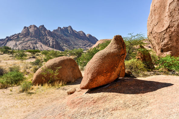 נוף בנמיביה. גם כאן יש שמורות טבע עם בעלי חיים, אבל עיקר המשיכה הוא הנופים המפעימים והמפגש עם התושבים