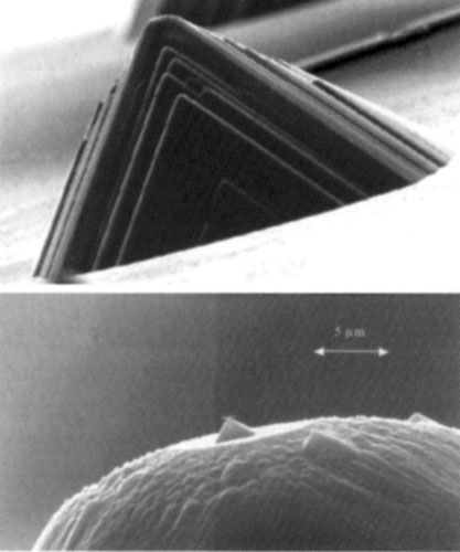 | מחט דקה העשויה מגביש סיליקון. משמשת למטרות הדמיה אופטית וחשמלית במיקרוסקופ מיוחד, שבעזרתו ניתן לדמות אובייקטים במימדים ננו-מטריים, שאי אפשר לראותם בטכניקות מיקרוסקופיות אחרות | פרופ' אמיר סער ופרופ' יוסי שפיר |