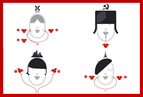 בכל מדינה מתנהגים אחרת בעת שפוגשים אנשים חדשים או מכרים ותיקים. אקט הנשיקה עלול להיות מבלבל במיוחד, ואם טועים - גם מביך מאוד. מדריך קצר לתייר המנשק פורסם 30.4.11 |