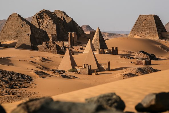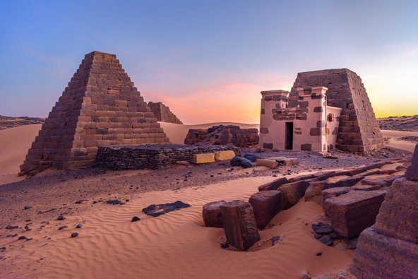 השטח שבו זורם נהר הנילוס, באזור מפגש הגבולות מצרים-סודן, שימש בית לשלוש ממלכות בימי קדם: ממלכת קרמה, ממלכת נפטה וממלכת מרואה, לכולן היתה תרבות עשירה, שהושפעה רבות ממלכת הפרעונים במצרים, בין היתר, בבניית פירמידות אשר שימשו כאתרי קבורה של המלכים באותה תקופה. הפירמידות פזורות בשלושה מוקדים, הריכוז הגדול והמרשים ביותר נמצא במרואה (Meroe), כמאה קילומטרים מצפון לבירה חרטום, על הגדה המזרחית של הנילוס. באתר יש כ-200 פירמידות שמורות היטב, שהוכרזו כאתר מורשת עולמית של אונסק"ו. בעיני רבים, זוהי גולת הכותרת של הטיול בסודן.