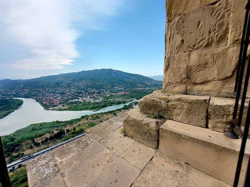 בגאורגיה, כמו שאפשר לראות גם במהלך ביקור קצרצר, יש לא מעט כנסיות ומנזרים במיקומים מרשימים במיוחד. אחד מהם הוא מנזר ג'ווארי, או מנזר הצלב, שניצב באון על ראש צוק, משקיף על מצחתה ומפגש הנהרות, שנראה מכאן היטב. על פי האמונה, במאה הרביעית לספירה נינו, שהביאה את הנצרות לגאורגיה, בנתה כאן כנסייה קטנה. במאה השישית נוספה כנסייה גדולה יותר, בצורת צלב מרובע, מבנה ארכיטקטוני שניתן לראות בכנסיות רבות ברחבי גאורגיה שנבנו מאוחר יותר.