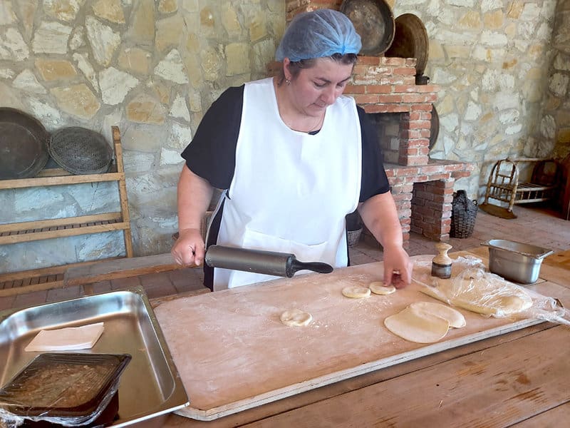 סמטה היורדת בתלילות מהרחוב הראשי מובילה למסעדת Kera שיושבת ממש על שפת הנהר. עצים מצלים על החצר מעל המים ואל השולחן מגיעות המנות האהובות כל כך מהמטבח הגאורגי המסורתי: צלחת גבינות עזות טעם, כדורי פחאלי מירקות שונים (סלק, תרד, חצילים וכן הלאה) טחונים עם אגוזי מלך, סלט ירקות עם רוטב של אגוזים, דגי נהר קטנטנים מטוגנים, עוף ברוטב אגוזים… אגוזי המלך מככבים במנות רבות, בין השאר בתוך רטבים וכשמן שמפיקים מהם. וכמובן חצ'פורי בגרסתו העגולה, כי איך אפשר בלי… (כתובת: 3 Sanapiro, Mtskheta, פייסבוק)
