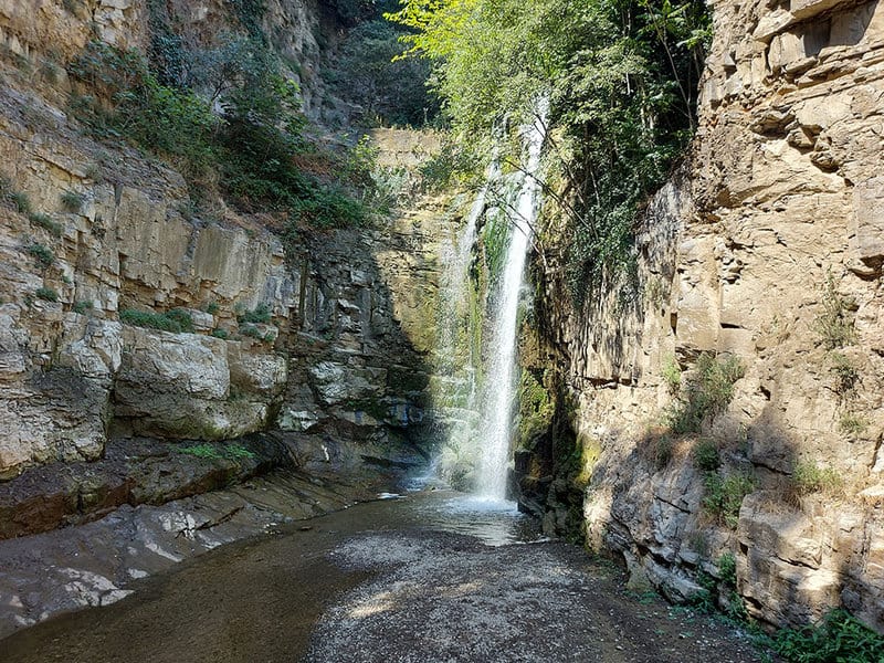 בכיכר עם בתי המרחץ, שקל לזהותם בזכות סדרה של כיפות קטנות ולצדם בית המרחץ אורבליאני (Orbeliani) עם העיטורים המורכבים והנפלאים, מחכה לכם עוד הפתעה. הליכה קצרצרה מאחורי בית המרחץ הססגוני תביא אתכם לשביל לאורכו של ערוץ עמוק, שמעליו תלויים בתים שנראה כאילו עוד רגע ישמטו למטה. לכו בשביל עד למפל מקסים, פינת טבע קסומה ממש בלב העיר.