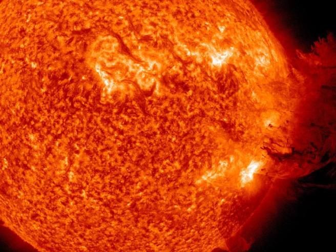 התפרצות מאסיבית על השמש שחררה חלקיקים בעלי מטען חשמלי שעלולים לשבש אמצעי ניווט ותקשורת פורסם 24.1.12 |