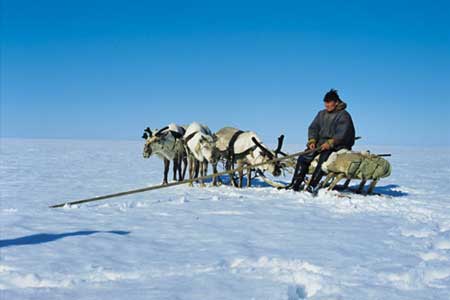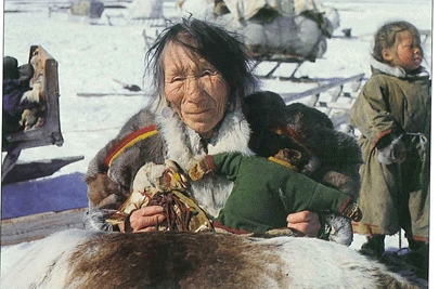 עולם הולך ונעלם למרות שיש בקרב עמי החוג הארקטי קבוצות רבות ומגוונות, ובהן רועי איילים, דייגים וציידים, אפשר למצוא ביניהם דמיון תרבותי רב . מקורו של הדמיון בקשיי הסביבה והאקלים; השוני נובע מהבידוד והריחוק, ומאופי הקשרים והמגעים עם חברות אחרות. הסאמי בסקנדינביה והאינואיט (אסקימואים) באמריקה ובקנדה חיים בחברות מערביות, בארצות שפע ורווחה, בעלות טכנולוגיה מפותחת. הקשרים הממושכים עם האדם הלבן ותרבותו, הקִדמה והפיתוח הביאו לשינויים רבים באורח חייהם. בימאל שברוסיה, לעומת זאת, ממשיכים ילידי המקום לרעות את עדרי האיילים במסלולי נדידה עונתיים, למרחקים של כאלף קילומטרים, ומקיימים מסורות ומנהגים שחלפו מהעולם במחוזות אחרים של חוג הקוטב. שמורת הטבע האנושית של נוודי הצפון משתרעת בשולי אסיה, בחצי אי שאורכו כ־750 קילומטרים, בצפון־מערב סיביר. האיזור הוא טונדרה – שטח מישורי השופע ערוצי נחל, נחלים ואגמים המכוסים קרח רוב ימות השנה, מלבד בעונת הקיץ הקצרה. בגלל הקרבה לאוקיינוס הארקטי, מזג האוויר בימאל סוער והרוחות עזות. "הסביבה העוינת, תנאי השטח הקשים והריחוק ממרכזי האוכלוסין והשלטון של רוסיה הגבילו את המגעים של תושבי ימאל עם העולם", אומר דוד. "לכן נדמה שהם הצליחו לשמר את התרבות ואת אורח החיים שקיימו לפני החשיפה לעולם המודרני. תדמית זו אינה תואמת תמיד למציאות, אך נראה שהם הקבוצה האותנטית ביותר של נוודי הצפון בקרב הילידים הארקטיים ששרדו בימינו". עברם של האנשים נתונים סטטיסטיים מגלים שרק כמחצית מבני הניניץ הם נוודים והשאר יושבי קבע, אך מספר לא מבוטל מהם מנהלים אורח חיים המשלב נוודות והתיישבות. הניניץ, המתגוררים בכעשרה יישובי הקבע בימאל, מושפעים משכניהם הרוסים ומאמצים את שפתם ותרבותם, אך הם שומרים על קשרי משפחה ועל זיקה למערכת השבטית. תושבי הכפרים מבקרים לעיתים קרובות את קרוביהם בטונדרה, והנוודים מתארחים אצל בני משפחתם ביישובי הקבע. הגישה המחקרית המקובלת, המבוססת על האחידות האתנית של שבטי הסאמויידים, קובעת כי מקורם בהרי סאייאן (SAYAN) שבדרום סיביר. באלף הראשון לספירה הם נדדו צפונה והתפזרו ברחבי הטונדרה. כשהגיעו לחופי האוקיינוס הארקטי, התמזגו כנראה עם קבוצות אתניות מקומיות של דייגים וציידים. בפולקלור של בני הניניץ השתמרו אגדות רבות על הסִיחְרְטָה, יצורים על־טבעיים החיים בטונדרה, שבעת התגלותם לבני האדם נשמעים צלילים מתכתיים. החוקרים סבורים שהסִיחְרְטָה הם למעשה זכרונות קמאיים של העמים הארקטיים הקדומים, שבני הניניץ אימצו לאחר שהתמזגו עימם. בחפירות שנערכו בימאל חשפו הארכיאולוגים שרידים של יישובים עתיקים על חוף הים, בהם חיו קהילות של ציידי איילים וחיות ים, שהשתמשו בכלי חרס ומתכת שלא היו ידועים לניניץ לפני המפגש עימם. מיומנותם של בני הניניץ בציד חיות ים, ומלים מסוימות בשפתם, הזהות למונחים השגורים בפי אסקימואים, הם הוכחה נוספת להטמעת התרבות הארקטית המקומית בקרבם. המגע הראשון עם בני הניניץ מתועד בכרוניקת נסטור, כתב יד של נזיר רוסי, מהמאה ה־11 המספר את סיפורם של תושבי נובגורוד (NOVGOROD) שהלכו לחפש את מזלם מעבר להרי אוראל. לפי כתב היד, סחרו אנשי נובגורוד עם אנשי יוגרה, מאבותיהם של הפינים, "היושבים יחד עם הסאמויידים". ג'ובני קרפני, נזיר פרנציסקני שנשלח במאה ה־13 למרכז אסיה כדי למצוא בעלי ברית לנוצרים שיצאו למסעי הצלב, מזכיר בספרו "ההיסטוריה של המונגולים" את הסאמויידים, החיים באוהלי פרוות, ומספר כי נכבשו על ידי פרשי הערבות. כמה עשרות קוזאקים פורעי חוק כבשו את סיביר מהטטארים במאה ה־16, והעניקו לאיוואן האיום את השליטה ברוסיה שממזרח להרי אוראל. הצארים הרוסים לא השמידו את התושבים ולא גזלו את אדמתם, אלא גבו את ה"יאסאק", מיסים ששילמו עמי הצפון בפרוות יקרות ערך. רשימות המיסים מהמאות ה־17 וה־18 הן מקור אתנוגרפי נדיר לחקר המבנה החברתי של הניניץ ויחסיהם עם השלטונות. מתברר כי נציגי הממסד הרוסי בצפון הרחוק הפכו את השח