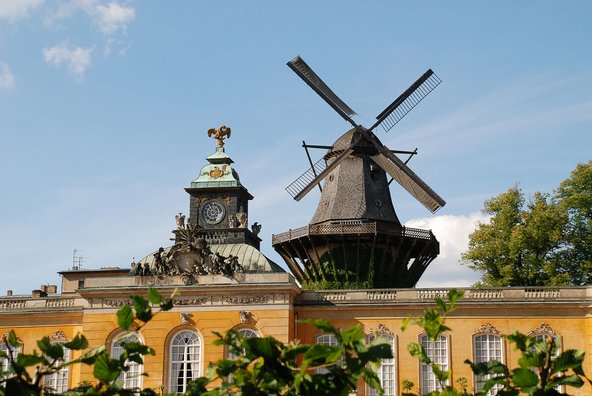 מתחם סנסוסי (Sanssouci) הוא התשובה של פרידריך הגדול לוורסאי: ארמונות, פארקים, מזרקות ומבנים דמויי מבנים רומאיים וסינים ועוד. ומה רואים פה?