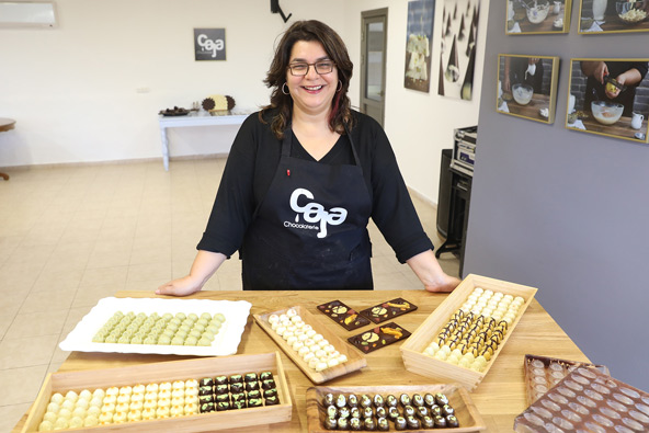 גליה לוי בקאג'ה שוקולטרי. יוצרת פרלינים וטבלאות שוקולד בטעמים מורכבים ומופלאים