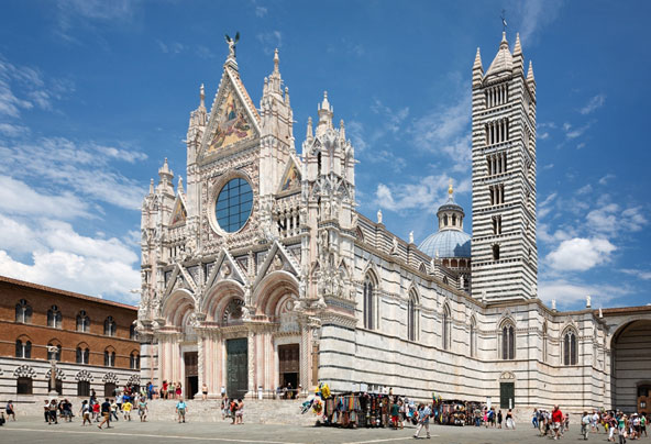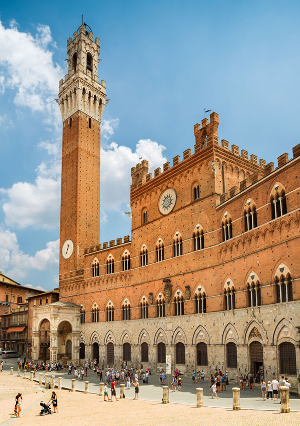 ברבות מערי איטליה דוברת ההיסטוריה מקירות הבתים, מהחומות, מחזיתות הארמונות והכנסיות, ומיצירות האמנות המעטרות אותם. בסיינה (Siena), ההיסטוריה דוברת אפילו מהרצפה: לבה וסמלה של סיינה היא הכיכר המרכזית דמוית המניפה, הקאמפו (Piazza del Campo), שתשע הגזרות המרכיבות אותה מייצגות את מועצת התשעה, אשר ניהלה את העיר בתור הזהב שלה במאות 14-12. הכיכר, המרוצפת בלבנים אדומות, נוטה במתינות לעבר ארמון העיר החינני ומגדל השעון המתנשא מעליו. בימי שמש חורפיים, הכיכר (הסגורה לתנועת מכוניות) מלאה בצעירים ומבוגרים המתחרדנים בשמש, נהנים מן החום והשלווה. באביב ובסתיו הומים בתי הקפה והמסעדות שסביב הקאמפו תיירים המתפעלים מיופיה. אבל בשיא הקיץ משנה הכיכר את פניה והופכת לזירה בה נערך מירוץ הסוסים המסורתי (Corsa del Palio), שהוא גם חגיגה דתית ותחרות סוערת בין שכונות העיר. חוץ מימי הפאליו, סיינה הקטנה יחסית (כ-55 אלף תושבים) מציעה שילוב נעים של אתרים מעניינים, יצירות אמנות מן המעלה הראשונה, תפאורה ימי-ביניימית מרהיבה, ובסיס נוח לביקורים באתרים שבסביבה. לכל אלה ראוי להקדיש יומיים-שלושה.