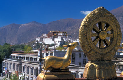 כשניצבים על גג המקדש בסמוך לסמל ומשקיפים מערבה, זוכים במבט יפה על הפוטאלה (Potala), ארמונו המפורסם של הדלאי לאמה ומסמליה המוכרים של טיבט. מזווית זו לא רואים את הרחבה העצומה שהוקמה במקום שכונת מגורים קדומה וגם לא את השדרה הסינית הסלולה היום למרגלות הגבעה. מגג מקדש ג'וקהאנג נראה ארמון פוטאלה עדיין בתומתו, מתריס בלובן קירותיו ובגגותיו המוזהבים כנגד פסגות ההרים האפורות שמאחוריו. על פי המסורת המקומית, לפני שהוקם הארמון הנפלא הזה ניצב כאן ארמונם של מלכי טיבט, וממנו הם שלטו על אימפריה גדולה שהתקיימה מהמאה השביעית ועד אמצע המאה התשיעית. בשיא עוצמתה הביסו צבאותיה את לגיונות סין ואף כבשו למשך זמן קצר את הבירה הסינית שאנג אן (Shang an), המוכרת היום כשיאן (Xian). הבודהיזם, שנעשה מזוהה כל כך עם טיבט, הגיע אליה מאוחר יחסית, רק במאה השמינית לספירה, מאות שנים לאחר שכבר כיתרו אותה מדינות בודהיסטיות מכל עבר. המנזר הבודהיסטי הראשון הוקם רק בשנת 797 לספירה בסאמיה (Samye), עיירה שנמצאת מרחק רב מלהסה. זהו מנזר מרהיב עין הבנוי במתכונת של מנדלה, דיאגרמה קוסמית: המקדש המרכזי, הבנוי כפגודה מוזהבת גגות, משול לציר העולם, וסביבו מבנים המייצגים את ארבע היבשות. לפי המסורת הוקם המנזר בעקבות ויכוח דתי מורכב וסוער שנערך באתר, ובו עלו שאלות תיאולוגיות רבות, אך עיקרו סביב השאלה: האם ההארה היא הדרגתית או מידית? תוצאות הוויכוח בסאמיה קבעו את גורלו של הבודהיזם בטיבט – המלך, שבחר בצד המנצח, בחר בגישה ההודית שלפיה ההגעה להארה היא הדרגתית. עד היום בריקודי נזירים טיבטיים מוצג הנזיר הסיני כדמות מגוחכת ורבת קלון. לזכותם של הטיבטים ייאמר כי בחרו בבודהיזם שהגיע מהודו, כור מחצבתו של בודהה, אולם אי אפשר לנתק את בחירתם מרצונם העז להיבדל מסין. לאחר נפילת ממלכת טיבט, תקופה שמקובל לחתום אותה ברציחתו של המלך האחרון בטיבט בשנת 842, היתה תקופת שפל גדולה שבאה לידי ביטוי בדעיכה דתית ולאומית ובהתערערות גדולה של ביטחון הפנים. רק כעבור כ-150 שנה שב הבודהיזם והכה שורשים בשנית. באותם ימים איבדה טיבט את מעמדה כאימפריה והיתה מחולקת בין ממלכות שונות, ובעיקר בין שני מחוזות יריבים: מחוז טסאנג הדרומי ומחוז יוּ הצפוני, שבהם התפתחו גם סיעות דתיות שהיו מעורבות לא מעט בפוליטיקה המקומית. בעקבות הכיבוש המונגולי בראשית המאה ה-13 החלו הממלכות לקיים מגעים עם המונגולים, ולימים גם עם סין, על פי מודל שהיה נוח לשני הצדדים: טיבט תספק השראה דתית-תיאולוגית לפטרון, והפטרון יתמוך מבחינה פוליטית באיש הדת. מאז ועד העת המודרנית ניסו כמה וכמה מעצמות לקנות אחיזה בטיבט על פי מודל זה. בשנת 1655 מת החאן המונגולי, והדלאי לאמה החמישי, שעד אז היה כפוף למרותו, הצליח להשיג עצמאות ולאחד את טיבט כולה תחת שלטונו. הדלאי לאמה השישי שב והוכפף לריבונות מדינית מונגולית, ולאחר שמת שמרו אנשי חצרו את הדבר בסוד, בחרו ביורשו והחלו להכשירו בחשאי. כשהדבר נודע למונגולים הזועמים הם רדפו אותו והסמיכו דלאי לאמה שביעי מטעמם. מוזר להיזכר בהמשך השתלשלות העניינים, בהשוואה לאירועים שהתחוללו זה עתה בטיבט: לימינו של הדלאי למה הטיבטי עמדו דווקא הסינים – הם ליוו אותו חזרה ללהסה, הושיבו אותו על הכס והשאירו בעיר כוח צבאי שיגן עליו. אבל מניעיה של סין לא היו דאגה לשלומו של הדלאי לאמה ולנכסי האמונה הטיבטיים, אלא מניעים אימפריאליים גרידא: על ידי דאגה לדלאי לאמה המועדף בטיבט, הבטיחה סין את מעמדה כפטרונית מדינית של אנשי הרמה הגבוהה.