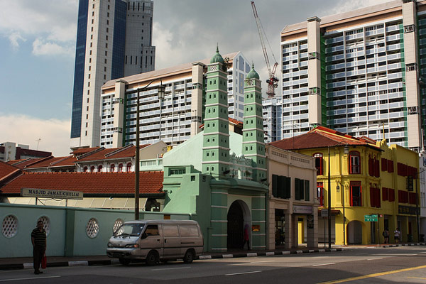 כשיוצאים מהמקדש פונים שמאלה ברחוב South bridge עד שמגיעים למסגד Jamae (במספר 218) שנראה כנטע זר בלב הצ'יינה טאון. המסגד, שהוקם ב-1826, מעוצב בסגנון אקלקטי, כששער הכניסה שלו מעוצב בסגנון הודי ואילו אולמות התפילה מעוצבים בסגנון ניאו קלאסי. מכאן ניתן להמשיך למוזיאון Fuk Tak Chi, שכדי להגיע אליו ממשיכים צפונה ברחוב South Bridge, עד שמגיעים ל-Cross Street ושם פונים ימינה. ממשיכים ללכת ברחוב כ-300 מטר, עד שפונים ימינה לרחוב Telok Ayer , שם ממשיכים עד שרואים את המוזיאון מצד ימין. למעשה מדובר במקדש שנבנה ב-1824 והיה המקדש הסיני הראשון שנבנה בסינגפור. המקדש היה האחת התחנות הראשונות של המהגרים שהגיעו מסין לסינגפור. זמן קצר לאחר הגעתם לסינגפור הם ביקרו במקדש כדי להודות על כך שעברו את המסע בבטחה. באותם ימים המקדש שימש גם כמעין מרכז קהילתי למהגרים. ב-1988 המבנה עבר שיפוץ והוסב למוזיאון זעיר שהמוצגים שבו עוסקים בחייהם של המהגרים הסינים הראשונים בסינגפור. כתובת: 76 Telok Ayer St.