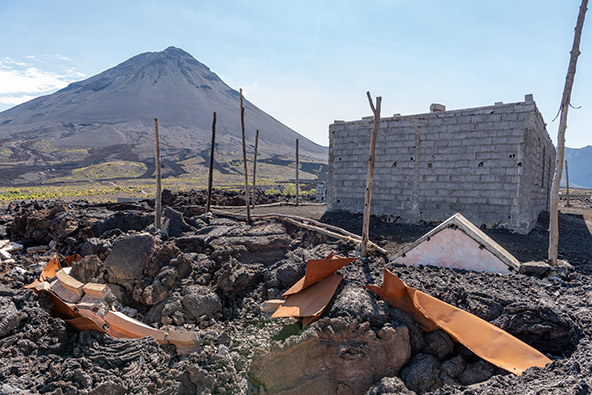 בית בכפר שבתיו נהרסו בהתפרצות האחרונה של הר הגעש פוגו | צילומים: שאטרסטוק