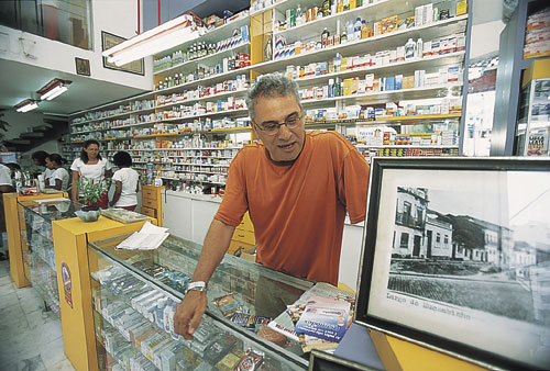 לפיכך צעדנו במעלה רחוב סודרה וחיפשנו את הבית ההולם את המורה לבישול, שהיתה לידועה ביותר מבין גיבורי ספריו של אמאדו, גם אם יותר בזכות הסרט בכיכובה של סוניה בראגה מאשר בזכות הספר המקסים שפרסם אמאדו ב־1966. הבתים ברחוב נמוכים וקטנים. נראה שלא שופצו זה שנים רבות. באחד הפתחים מחייכת אלינו אשה זקנה. מעשה שטן, מתברר ששמה דונה פלור. בנדיבות ברזילאית אופיינית היא מזמינה אותנו להיכנס לביתה הקטן. הריהוט המיושן והתמונות המשפחתיות הדהויות שעל הקירות משלימים את התמונה. כך ודאי נראה ביתה של דונה פלור הבדיונית לפני כשבעים שנה. הגענו לרחבת 2 ביולי, מהלך דקתיים משם. כאן נפל ומת ואדיניו, בעלה הראשון של דונה פלור, ההולל והפוחז. זה היה בבוקר של קרנבל, והוא שיכור כלוט, מחופש בלבוש אשה, רוקד וצוהל. הבוקר אין כאן קרנבל ואין כאן ריקודים. רק מכוניות חונות סביב הרחבה המשופעת המוקפת חנויות קטנות. מרחק הליכה קצרה משם, בפינת הרחובות קאבסה וקרלוס גומס, ניצב, על פי הספר, בית המרקחת של דוקטור תיאודורו, בעלה השני, המהוגן והמשעמם, של דונה פלור. גם במציאות ניצב באותו מקום בית מרקחת, Pharmacia Luz. הבעלים, בראוליו רודריגז דה אוליווירה, מסביר פנים ומספר לנו כי את בית המרקחת הקים אביו המנוח ב־1904. בתמונות שתלויות על הקיר מתועדים בית המרקחת וצומת הרחובות כמו שהיו בשנות השלושים, זמן התרחשותה של עלילת "דונה פלור ושני בעליה". "אבי הכיר את ז'ורז' אמאדו וחזותו החיצונית שימשה כנראה השראה לדמותו של דוקטור תיאודורו", מספר בראוליו. "כשהייתי צעיר היו נכנסים לבית המרקחת תיירים ושואלים אם אמי היא דונה פלור", מוסיף הרוקח בשעשוע.
