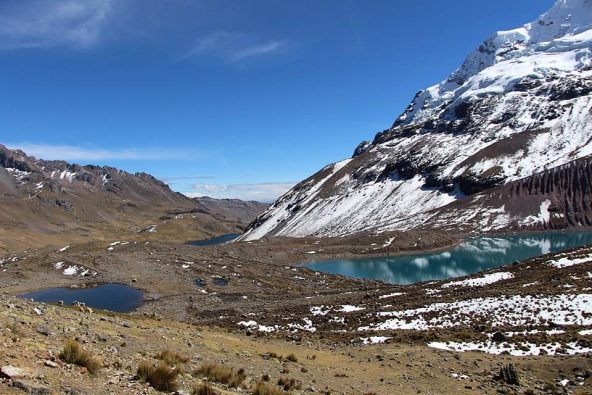 לאחר ארוחת צהריים התחלנו לרדת, יש הליכה של 4 ק"מ עד לכפר pampacancha, מצד שמאל תוכלו לראות לגונה שאמורה להיות אדומה, אצלנו היא הייתה קפואה.