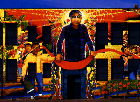 כשמתחילים ללכת בסמטה, מצפון לדרום, נתקלים בציור "מאוחדים במאבק" בין הציורים הבולטים בצד המזרחי של הסמטה (שבו הולכים מדרום לצפון, בחזרה לרחוב 24) אפשר להזכיר את "Una Ley Imoral" של חואנה אליסיה. הציור מוקדש לארכיבישוף אוסקר רומֶרו, פעיל בולט לזכויות האדם באל־סלוודור, שנרצח ב־1980. בהמשך הסמטה כדאי לחפש ציור קיר נוסף של אנדרו שולץ. מומלץ להתבונן גם במחווה צבעונית נוספת לאוסקר רומרו, ציור קיר של ג'יימס מורגן וקארן בנט, שצויר ב־1984. ציור הקיר האחרון בסמטה הוא "חמשת הצבעים המקודשים של התירס" (The Five Sacred Colors of Corn). כשמגיעים לפינת רחוב 24, פונים בו ימינה (מזרחה) והולכים לאורך בלוק אחד. בבית מספר 2981 נמצא מרכז המבקרים Precita Eyes Mural Arts and Visitors Center, שנוסד ב־1977 על ידי סוזן קלק סרוונטס, ושבו תוכלו ללמוד עוד על ציורי הקיר של העיר. ליד מרכז המבקרים, בפינת הרחובות 24 ופלורידה (Florida), נמצאת כנסיית פטרוס הקדוש (St. Peter’s Church). כאן נוכל להתבונן ב"500 שנות מאבק" |