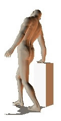 תחושת מתיחה: בחלקו הצדי ביותר של אגן שמאל. הערות: יש לכווץ את העכוז היטב ולהקפיד על כיפוף של 30 מעלות בברכיים. ביצוע: לעמוד זקוף כאשר מימין יש שולחן להישען עליו. כף רגל שמאל אחורית ב-20 סנטימטר לכף רגל ימין. לכופף ברכיים ל-30 מעלות. לכופף את הגוו ימינה עם עכוז מכווץ. יש לחפש היטב את תחושת המתיחה. | ||||