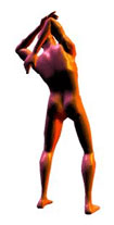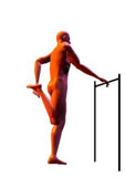 תחושת מתיחה: בקדמת ירך ימין. הערות: עדיף (שלא כמו בציור) לתפוס את הרגל ביד של אותו צד. ביצוע: להחזיק את כף רגל ימין ביד ימין. להסיע ברך לאחור, עד לתחושת מתיחה בקדמת הירך. | ||||