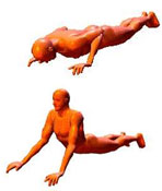 תחושת מתיחה: בשרירי הבטן, מתחת לצלעות. תתכן תחושת "דחיסה" בגב התחתון. יש להקפיד שהיא רק במרכז ולא בצד. אם יש כאב צדדי, יש להסיט את הרגליים לצד השני ולנסות שוב. אם לא מצליחים – לא לבצע את התרגיל. ביצוע: לעלות באיטיות ממצב שכיבה על הבטן. להחזיק 5 שניות ולרדת. לבצע 8 חזרות. הערות: כל כאב, אם קיים, חייב להופיע במרכז הגב התחתון ולא באחד הצדדים או ברגל.