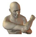 תחושת מתיחה: בחלקה האחורי של הכתף. ביצוע: להושיט את יד ימין ישרה קדימה, ואז להפנות אותה אל מול כתף שמאל. בעזרת יד שמאל לתפוס את מרפק ימין ולמתוח.