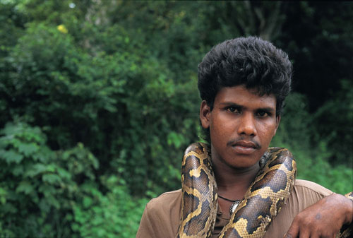 | מאלף נחשים טמילי. הטמילים הם מיעוט במדינה, אבל סינהלים רבים חוששים ממזימה להפוך את סרי לנקה לחלק מהמדינה הטמילית שבהודו הסמוכה, שם חיים עוד 50 מיליון טמילים | צילום : דודו בן-צור |