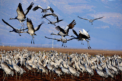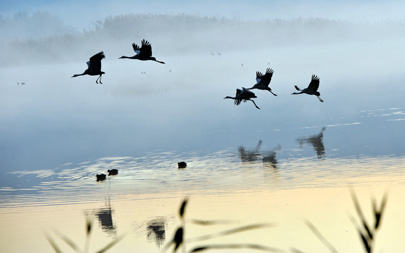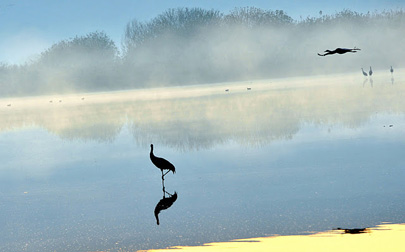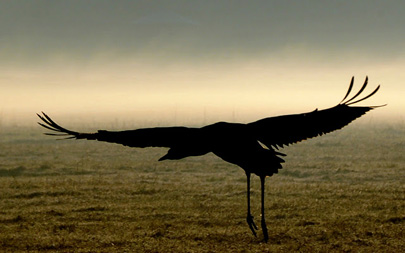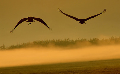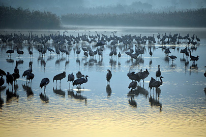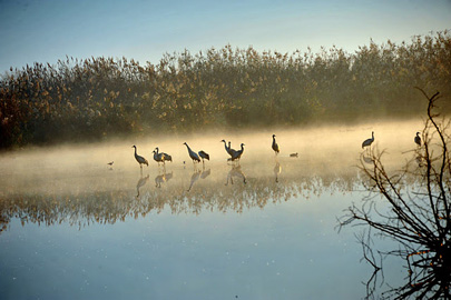 אגמון החולה. שש בבוקר. אתה ישוב בעגלה חשופה הנגררת על ידי טרקטור ונוסע אל ארצות העגורים. הקור מקפיא. העגורים עצמם נראים עדיין מנומנמים משהו, משוטטים בשדות ומנקרים להם אנה ואנה.