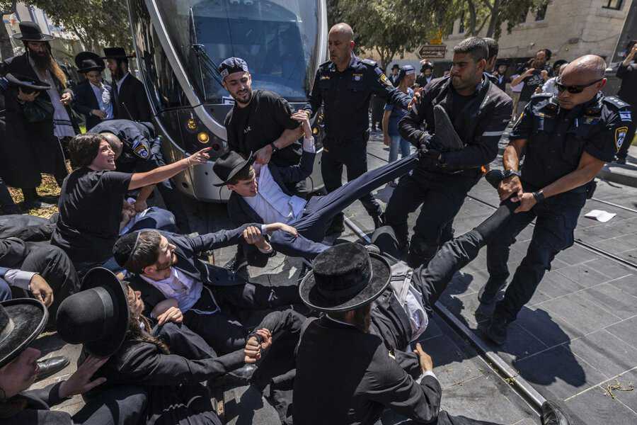 הפגנת אנשי ימין במחאה על התנגדות להצבת עמדת הנחת תפילין סמוך לשער בית הספר, הצילום הזוכה בקטגוריית דת ואמונה | צילום: יהושע יוסף
