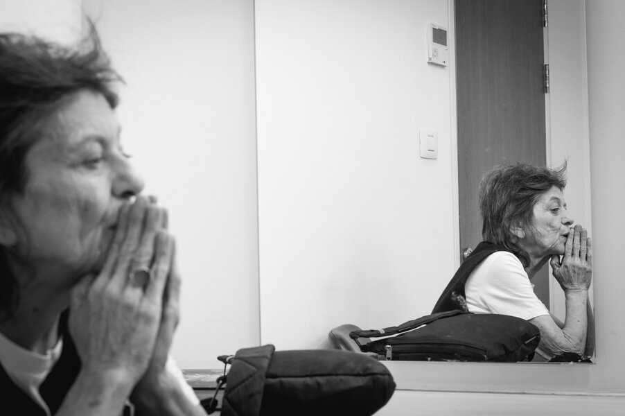 קורין אלאל ז"ל לפני העלייה לבמה, חלק מסדרת הצילומים שזכתה בפרס צילום אורבניזם ותרבות | צילום: שירלי פוקס