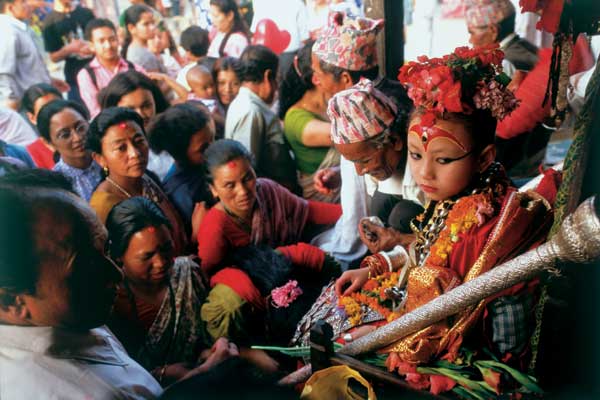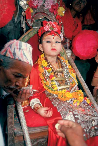"הכניסה להינדואים בלבד", פלט בגסות שומר הסף. הוא חסם בפני פתח צדדי קטן בירכתי החצר של משכן הקומארי המלכותית בכיכר דורבאר (Durbar) שבלב קטמנדו העתיקה. רציתי להצטרף למקומיים שנהרו דרך החצר לחלות את פניה של הקומארי – הילדה–האלה – כשהם נושאים בידיהם מנחות או גוררים אחריהם ילדים קטנים, אבל נאלצתי לסגת. הדבר היחיד שהצלחתי לראות בתוך האפלולית היה גרם מדרגות שדרכו עלו המאמינים אל הקומה השלישית כדי לקבל ברכה מהקומארי. ובכל זאת, התמזל מזלם של הנוכחים הזרים שבחצר, ולהרף עין הציצה הקומארי מבעד לאחד החלונות הגבוהים. ילדה יפה, גילה אינו יותר משש שנים, בגדיה אדומים, סימן של עין שלישית גדולה קבוע על מצחה, ועל ראשה פקעת של שיער אסוף ומקושט בפרחים. היא הביטה לעברנו ספק באדישות תהומית, ספק בבוז. בטרם הספקתי להיטיב מבט, שבה ונעלמה אל תוך ההיכל. "קומארי" בסנסקריט ובשפות שהתפתחו ממנה פירושו "צעירה" או "בתולה". היא ממש ילדה, חשבתי כשאני מבאר לעצמי את משמעות שמה. במדריכי טיולים היא נקראת לעתים "האלה החיה". המחשבות מתחילות להתרוצץ בראשי – איך היא נבחרת? מה היא מגלמת בעיני האנשים? איזה אורח חיים יש לילדה שנחשבת אלה? יצאתי למסע בירורים בעמק קטמנדו. פשפושי בעקבות הקומארי הפכו לצלילה אל נבכי המיניות בנפאל, בפרט המיניות הנשית, ומשם אל מחוזות אישיים הרבה יותר. עוצמת הבתולים הנערות הנסגדות כקומארי שייכות לבנות הנווארים, תושביו הקדומים של עמק קטמנדו, שדתם מאופיינת במיזוג בין הינדואיזם לבודהיזם.