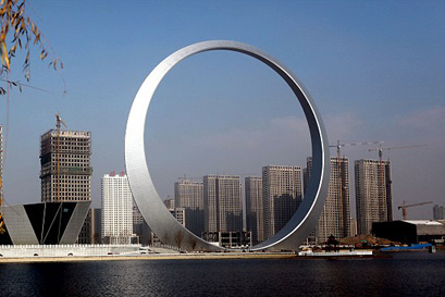 טבעת פלדה בגובה בניין בן 50 קומות מוקמת בצפון סין, ותשמש לתצפית על האזור פורסם 20.11.12 |