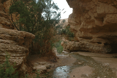 לאחר שחנינו את הרכב נלך בזהירות אל עברו הצפוני של הגשר החולף מעל הערוץ היבש של נחל בוקק. מצפון לגשר נוכל לעקוב בקלות אחר תחילת השביל המסומן באדום המטפס לכיוון המיצד הרומי, והלאה משם אל כתם הירק שבמעלה המדרון – עין נואית. הטיפוס תלול ובהגיענו למעיין נוכל לנוח בצל הצמחייה ולהשקיף על הסביבה. מבט מטה יאפשר לנו תצפית יפה על מלונות ים המלח, בריכות מפעלי ים המלח, צפון הר סדום, והרי מואב. גם אם לא נזכה לראות בעלי-חיים באזור המערבי, לבטח ניתקל במספר ציפורים. הבולטת מכולן היא הטריסטרמית שיחד עמנו תתפעל מהנוף בקריאות וויי וויי סוחפות. הציפור מזכירה במראה שחרור, אך במעופה בולטים כתמי כנף כתומים. את השם המוזר העניק לה החוקר הבריטי, הנרי טריסטראם בייקר, שחקר את החי והצומח של ארץ ישראל בסוף המאה ה-19 והיה ראשון מגליה לעולם המחקר. שמה האחר הוא זרזיר ים-המלח, שם המעיד על שיוכה המשפחתי. מעל עין נואית נגיע לצומת שבילים. הפעם נמשיך בשביל המסומן בשחור הפונה שמאלה. נלך כברת דרך קצרה ממנה נוכל להשקיף על מעלה הקניון של נחל בוקק, הנחסם על-ידי מפל גדול שבו זורמים מים רק בזמן שיטפון. הנקודה בה אנו ניצבים ומשקיפים היא נקודה טובה ובטוחה לראות שטפונות, אך בשום פנים ואופן אסור לרדת אל תחתית הערוץ עצמו (כלומר, יש לשוב באותה דרך בה הגענו ולא להמשיך כמתואר בהמשך). הליכה קצרה במורד הנחל (שמאלה) תביא אותנו אל הכביש. כשנראה מולנו את הגשר, נפנה שמאלה ונגיע בחזרה אל הרכבים. בדרך נחלוף על פני כמה בריכות שכשוך צוננות. בצד הנחל נבחין בשרידי אמת מים שבעבר הטתה את מי הנחל אל חלקות חקלאיות בדלתא שנוצרה בשפך הנחל. בשעות הבוקר המוקדמות ובשעות אחר הצהרים אפשר לצפות בבעלי-חיים המגיעים אל הערוץ כדי לשתות ולרעות על הצמחייה. הנפוצים בהם הם שפני סלע ויעלים, אך ברי המזל מביננו יבחינו גם במכרסמים שונים ואולי גם בטורפים. |