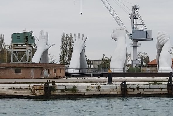 כדי לסיים את הכתבה באקורד אופטימי אציע להתבונן ביצירתו המונומנטלית והמרשימה של לורנצו קווין, "Building Bridges", המתכתבת עם הפיסול הרומי הקולוסאלי ומציעה מסר שאפתני של אחדות. קווין הציב על אחת התעלות בנמל ליד הארסנלה גשר העשוי משלושה זוגות ידיים הלוחצות זו את זו. הידיים שייכות לאנשים בגילאים שונים ומקומות שונים ומייצגים את הרב-תרבותיות (גם בביאנלה הקודמת הציג זוג ידיים צומחות מהתעלה ותומכות במבנה). לדבריו, כל יד מייצגת ערך הומניסטי אחר: חוכמה, אהבה אמון, תקווה, חברות, עזרה. לתקוותו, שילוב ידיים יביא להתגברות על ההבדלים ועשוי להביא לכינון עולם טוב יותר. אולי הפסל נראה אילוסטרטיבי והמסר נשמע פשטני, אך יש בדימוי הידיים, במיוחד בבואם לגשר על מים – יסוד החיים – כדי להזכיר לנו ש"זה בנפשנו" והמלאכה רבה, וכשמשלבים כוחות (בין פרטים ובין מדינות) סיכויי ההצלחה גוברים.