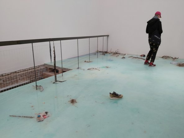 האמנית השוודית אינגלה אירמן מציגה מקבצי אובייקטים תלויים המורכבים מגלילי בד ירוקים. הם מזכירים מערכת צינורות גופנית פנימית מפותלת (מעי?) וצבעם נקשר לאצות. בגלל צבעם, אפשר שהאובייקטים מתייחסים לרעילות של מקורות מים ומזון ואולי האמנית מפנה זרקור לפגיעה באצות, הידועות בתרומתן לצמצום אפקט החממה. במיצב אחר תלתה אירמן יריעות עור על חבל, הנראות כמונחות לייבוש. חלקן דקיקות ומחוררות. נשלח רמז עבה לתעשיית העורות ולתרומתה לזיהום סביבתי ולפליטת גזי חממה מזיקים, הגורמים להתחממות גלובלית.