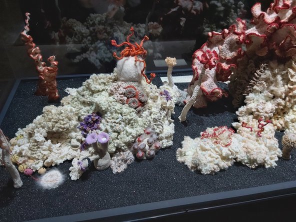 עבודה נוספת העוסקת בזיהום מי הים, שכותרתה "Crochet Coral Reef", מוצגת בארסנלה בביצוען וביוזמתן של האמניות האוסטרליות התאומות כריסטין ומרגרט וורט'היים, המגיעות מתחום המדע. התערוכה מעוצבת כחיקוי מדויק (כולל תאורה עמומה ורכה וכאילו-מבוקרת) של תצוגת אקווריומים ובהם מוצגים אלמוגים ויצורי ים מרהיבים. התבוננות מקרוב מגלה שעולם הדממה שיצרו האמניות עשוי כמעט כולו בסריגת "קרוֹשֶה" וחלקו מחומרים ממוחזרים. הדימויים מעוררי ההתפעלות קושרים בין מלאכת הסריגה הנבנית לאט לבין תהליך התגבשות האלמוגים האיטי. ראוי לציין שהשתיים הרחיבו את מלאכת בניית האלמוגים לפרויקט קולקטיבי-עולמי – שמשתתפים בו מעל 10,000 איש. הפרויקט רומז במובלע לדמיון שמתקיים בין תהליכי בניית קבוצות אנושיות ובין בניית מושבות של אלמוגים.