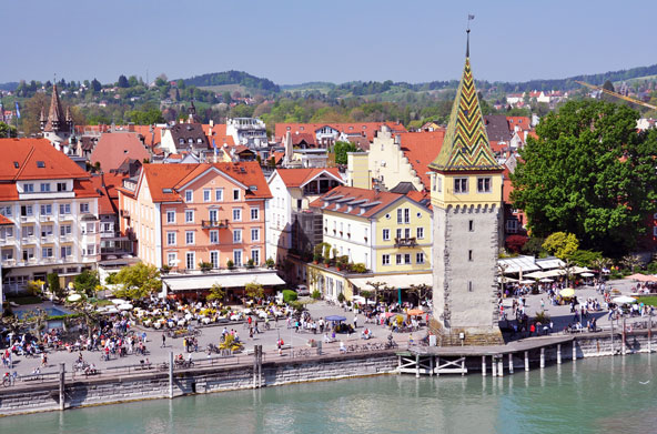 הנמל של לינדאו. מראש המגדל שבכניסה לנמל יש תצפית נהדרת על העיר והאגם