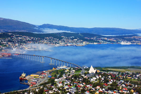 טרומסה, נורווגיה טרומסה (Tromsø), בירת צפון נורווגיה, שוכנת על האי טרומסאיה שמצפון לחוג הארקטי. ומחוברת ליבשת בגשר מרשים. העיר מוקפת בתפאורה מרהיבה של הרים ופיורדים, אבל למרות מיקומה וממדיה הצנועים, מדובר בעיר סטודנטיאלית תוססת ומלאת חיים, עם חיי תרבות ואמנות עשירים וחיי לילה סוערים. בקיץ אפשר לעסוק בקרבת העיר בטיולי הליכה ובשייט, ואילו בחורף אפשר לעסוק בסקי, דהירה על מזחלות רתומות לכלבים וכמובן – תצפית על הזוהר הצפוני.  טרומסה שוכנת על האי ומחוברת ליבשה בגשר מרשים מה אפשר לראות כאן? עם האטרקציות המובילות בעיר ניתן למנות את הקתדרלה הארקטית שנבנתה ב-1964 ומפורסמת בחלונות הענק שלה, את פולאריה – מתחם שעשועים המוקדש לקוטב ובו אקווריום עם חיות הים הארקטי, את הרכבת שמוביל לפסגת סטורסטיינן ואת הגן הבוטני הצפוני ביותר בעולם. בנוסף, יש בעיר מוזיאונים מעניינים כמו מוזיאון הקוטב, הגלריה לאמנות עכשווית ומוזיאון טרומסה שמוקדש לתרבות ולטבע של צפון נורווגיה.