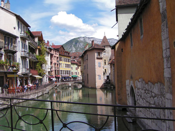 אנסי, צרפת והפעם, ונציה של האלפים. אנסי (Annecy) היא עיירת נופש יפהפייה ששוכנת למרגלות האלפים הצרפתיים, לחופו של אגם ציורי, במרחק נסיעה קצרה מז'נבה. העיירה נראית כאילו היא נלקחה מתוך ציור: יש בה תעלות מים, גשרים עתיקים המקושטים בפרחים, כנסיות מרשימות ובתים עתיקים שהמראה שלהם, משתקפים במי התעלות, יפה במיוחד. לאורך התעלות יש בתי קפה ומסעדות בשפע, ובימים שלישי, שישי ושבת יש פועל שוק לאורך התעלות ואז האווירה מיוחדת יותר מתמיד.  אנסי, עיירה צרפתית שנראית כאילו יצאה מתוך ציור