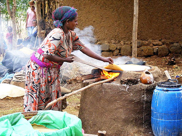 הגעתי לראשונה לאתיופיה ב-1994, לפני עשרים שנה. למסע היתה מטרה ברורה – לבדוק ולחקור את מקורות הסיפור על היעלמותו של ארון הברית המקראי והגעתו לכנסיית מרים מציון באקסום. הלכנו (הצלם יואל שתרוג ואנוכי) בעקבות הסיפור המסתורי והשנוי במחלוקת על מסעו של הארון מירושלים אל המנזרים באיי אגם טאנה, ללליבלה המופלאה ולאקסום, הבירה העתיקה, מקום משכנו האפשרי של הארון האבוד. הרגשתי אז כמו אינדיאנה ג'ונס… יד הגורל רצתה שבדיוק השתרר שקט באתיופיה שסבלה שנים רבות ממלחמה פנימית. הדבר אפשר בעצם את המסע וההרפתקה, אך הרקע היה קשה. אתיופיה עדיין שתתה דם. מראות המלחמה נראו בכל מקום, התשתיות היו הרוסות, כבישים לא היו כלל במדינה והעוני והדלות זעקו לשמיים. כמעט בכל מקום הקיפו אותנו עשרות בני אדם בקריאות "פרנג'י פרנג'י" – זר, זר. התיירים היו מעטים מאוד. תשתיות התיירות היו בסיסיות ובעייתיות. זה היה מסעי הראשון באפריקה בכלל.  הכנת אינג'רה, הלחם האתיופי המיוחד והחמצמץ | צילום: תמי נער