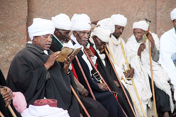 המהפכה הלשונית, התפתחות השפה, הובילה לאמונות, דתות, חברות ואידיאולוגיות. בעצם לתרבות כולה. המהפכה החקלאית, ומאוחר הרבה יותר גם התעשייתית, שיפרו בהרבה את יכולותיו של האדם. לא בטוח שאת אושרו. ד"ר יובל נח הררי דן על כך בספרו המצוין "קיצור תולדות האנושות". חשבתי על הדברים באתיופיה. אתיופיה עוברת שינוי מהותי, מחברות כפריות החיות בטבע עם קשרי קהילה מובהקים (כמעט כמו הציידים לקטים…) לחברות עירוניות, עם טכנולוגיה, כבישים ותקשורת. האם מישהו מודד גם את מדד האושר? נכון, בארץ שסבלה משנות רעב כבד, לפני האושר החמקמק כדאי שיהיה מה לאכול.  אנשי דת אתיופים. האתיופים גאים בהיותם אחד העמים הראשונים שקיבלו עליהם את הנצרות