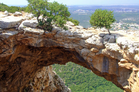 פארק אדמית נמצא ברמת אדמית שממנה נשקפים הנופים ההרריים של הגליל המערבי ומפרץ חיפה. האזור מאופיין בנוף פראי של מצוקי נחל בצת ונחת נמר. יש כאן חניונים ובהם שולחנות פיקניק, מי שתייה ושירותים. בפארק ניטעו עצי בוסתן ועצי יער, סומנו מסלולי טיול ונקבעו נקודות תצפית – כל מה שצריך לבילוי נעים בחיק הטבע. רמת אדמית היא חלק מרכס ראש הנקרה, במערבו של הגליל העליון. הרמה מתנשאת כ – 400 מטרים מעל פני הים. העתק (שבר גיאולוגי) הרים את הרמה מצד דרום ודרום-ומזרח, תוך כדי יצירת מדרונות זקופים, הניצבים כקיר מעל לנחל בצת. לעומת זאת, כלפי צפון, רמת אדמית משתפלת במתינות. רמת אדמית מסתיימת במערבה ב"חרטום" תלול, ששני נחלים עמוקים מנתקים אותו מסביבתו: במערב – הגיא העמוק של נחל נמר ובמזרח – נחל בצת, מהנחלים הארוכים בגליל. הסלע הבונה את רמת אדמית הוא בעיקרו דולומיט – סלע קשה וסדוק. המשקעים הרבים היורדים באזור, כ – 750 מ"מ בשנה בממוצע, ממסים את הסלעים, יוצרים בהם מערות רבות ואזורים טרשיים. בחלק מהמערות, דוגמת מערת נמר, יש נטיפים וזקיפים. חורבת אדמית אמנם לא נחפרה, אך ממצאי החרסים במקום מעידים על רצף התיישבות שראשיתו בתקופת הברונזה הקדומה ואחריתו בתקופה העות'מאנית. מסביב לחורבה נמצאו שרידים חצובים של גיתות ובתי בד. פארק אדמית קרן קימת לישראל החלה בנטיעת יער אדמית בשנות ה-50, אך חורבת אדמית נותרה בשיממונה כשהיא הולכת ונפגעת מרעיית יתר של עזים, מכריתת עצי החורש ומשריפות. בשנת 1995 נפל דבר. קרן קימת לישראל החלה בעבודות להפיכת השטח, שהיה מכוסה כולו בשיחים קוצניים, לגן עדן זוטא. ידיו האמונות של היערן חוללו פלאים. במדרונות חורבת אדמית שוחזרה מערכת של חקלאות מסורתית ובה טראסות (מדרגות חקלאיות) המגדלות בוסתנים של עצי פרי כמו תאנה, חרוב, משמש, עצי הדר, אגוז מלך, שקד, רימון, גפן וזית. בין הטראסות פזורות פה ושם גם משוכות צבר. במדרון הצפוני של חורבת אדמית הוקצה שטח מיוחד לחלקת צמחי תבלין, ביניהם אזוב מצוי, צתרנית משובלת, אזוביון דגול, זוטה לבנה וצמחים אחרים, שיכולים להתקיים כאן ללא השקיה מלאכותית. במעגל החיצון של הפארק נטועים עצים מחטניים ועצי חורש ים תיכוני. במדרון המערבי ניטעה חלקה גדולה של עצי ארז, רובם עצי ארז אטלנטי. מוצאו של הארז האטלנטי הוא בהרי האטלס שבצפון אפריקה, אך מסתבר כי העץ מתאקלם היטב בהרי הגליל. פה ושם ניטעו בחלקה גם עצי ארז לבנון וארז הימלאי. בפארק אדמית מצאו מקלט ובית גם עצי חורש גדולים שהיו בסכנת כריתה. עצי אלון מצוי, אלה ארצישראלית ועצי חרוב, שנמצאו בסכנה בגלל סלילת כביש חדש או הרחבת יישוב, הועתקו על ידי קק"ל לאתרם החדש בפארק והם נראים עתה כמו בני בית לכל דבר. דרך הנוף דרך הנוף הראשית בפארק חד סטרית. לאחר הכניסה בשער הפארק הדרך פונה שמאלה ומקיפה את חורבת אדמית ממזרח. בהמשך הדרך מגיעה לרחבת החניה העליונה של הפארק. כדאי לחנות כאן ולהתחיל לחוות את הפארק ונופיו: לשוטט בין בתי החורבה, לצפות אל מרחבי הגליל וגבול הלבנון, או לערוך טיול נינוח באחד מהשבילים המסומנים – "שביל ערוגות הבושם" ו"שביל הטרסות", המוביל למערת קשת. בחניון אדמית הסמוך אפשר ליהנות מפיקניק וליהנות בקיץ מבריזה קלה המגיעה מכיוון הים. דרך הנוף ממשיכה בהקפת חורבת אדמית מדרום ומגיעה לחניון הקרוי "חניונוף", בשל חלון הנוף הרחב הנראה ממנו. בחניון – שולחנות עם נגישות לנכים, מי שתייה ושירותים ביולוגיים. בקצה המערבי של החניון נמצאת נקודת תצפית המשקיפה אל המרחב שבין רכס הסולם והכרמל. מכאן יוצאים שני שבילים מעגליים, החוזרים לחניון. שביל אחד מוליך למערת הקשת, השוכנת במרחק של חמש דקות הליכה מהחניון; השביל השני מטפס לחורבת אדמית דרך חלקת הארזים וצמחי התבלין, ואחר כך שב בחזרה לנקודת המוצא. מסלולי טיול שביל מערת הקשת אופי המסלול: מסלול קל מאוד לאורך מצוק רמת אדמית, המוביל למערת הקשת ולמצפור משך הליכה: כחצי שעה סימון שבילים: מהחניון מתחילים בשביל קצר מסומן בירוק המובי