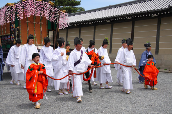 זהו פסטיבל אלגנטי, אשר משתתפיו עוטים על עצמם תלבושות חגיגיות בסגנון תקופת היאן, מהמאה השמינית. חלק מהחוגגים מתהלכים ברגל, וחלקם נישאים על סוסים בתהלוכה שמתחילה בארמון המלכותי בקיוטו ומסתיימת במקדש קאמיגאמו (Kamigamo Shrine). מקורותיו של פסטיבל זה הולכים אחורה לתחילתה של תקופת היאן, כאשר המנהיג היה מעלה מנחות למקדש קאמו בתקווה למנוע אסונות טבע שהתקיפו את הממלכה. מנהג זה של התהלוכה המפוארת התפתח בשיא של תקופת היאן ונשמר כפי הוא עד ימינו אנו, והתלבושות המפוארות נחשבות כקמע המגן עד היום מפני אסונות טבע.