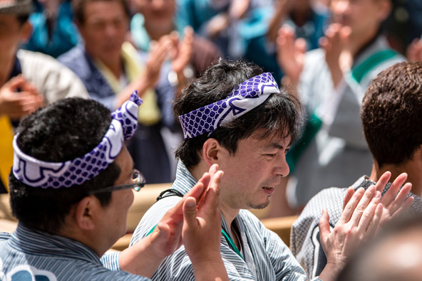 זהו פסטיבל שינטו שמתקיים בטוקיו מהמאה השביעית, ונערך ביום ראשון השלישי של חודש מאי בכל שנה, במקדש אסאקוסה (Asakusa Shrine) הממוקם ברובע אסאקוסה העתיק והמפורסם של טוקיו. פסטיבל זה הוא פסטיבל השינטו הגדול ביותר בטוקיו, ומושך אליו כשני מיליון מבקרים בשלושת ימי פעילותו, בהם הרחובות מלאים בצלילי ניגוני חלילים, תיפופים ומזמורים דתיים. לפי האמונה, ככל שצלילי המוזיקה והתפילות חזקים יותר, כך יזכו תושבי השכונה ומבקרי הפסטיבל במזל טוב יותר.