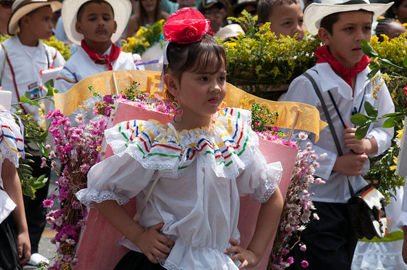קולומביה: פסטיבל הפרחים במדיין מדי חודש אוגוסט נערך במדיין (Medellín), העיר השנייה בגודלה בקולומביה, פסטיבל פרחים רב משתתפים, שנחשב לאירוע החברתי החשוב בשנה. הפסטיבל, שנקרא בספרדית Feria de Las Flores, נמשך חמישה ימים, והוא כולל שלל אירועים, בהם מצעדים של כרכרות מעוטרות בפרחים, תהלוכות סוסים, מסע של מכוניות עתיקות ברחובה הראשי של העיר ועוד ועוד. פסטיבל הפרחים של מדיין. ילדים בלבוש מסורתי עם משא של פרחים על הגב | צילום: Alcaldía de Medellín