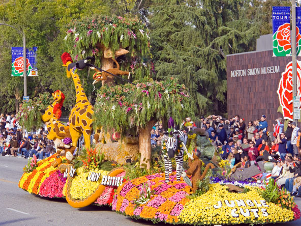 קליפורניה, ארה"ב: מצעד הוורדים בפסדינה מצעד הוורדים (Rose Parade) של העחר פסדינה, כ-60 ק"מ ממזרח ללוס אנג'לס, הוא חגיגה עליזה ופרחונית שמציינת את כניסת השנה האזרחית החדשה ומהווה פתיחה ל-Rose Bowl Game, המשחק החשוב של פוטבול מכללות. המצעד כולל תהלוכה ובה תצוגות פרחים מורכבות, הנישאות על גבי עגלות, בלוויית תזמורות המנגנות מוזיקת מצעדים מקפיצה. מצעד הוורדים בפסדינה. מאות מתנדבים עומלים להבטיח את הצלחת המצעד ומשחק הפוטובול שאחריו