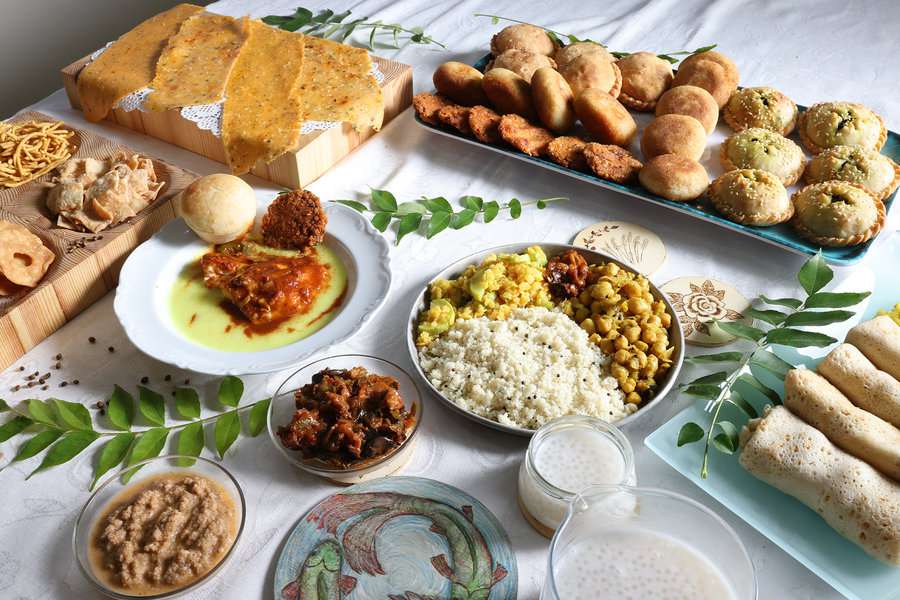 ארוחה אצל השתיים כוללת שולחן עמוס במטעמים. תמצאו שם מסאלה דוסה – מעין קרפ הודי נטול גלוטן העשוי מקמח כוסמין וממולא בתפוחי אדמה, רוטב קוקוס טחון, זנגוויל, גרגרי חרדל וכוסברה; מנת דג מסורתית עם רוטב צהוב על בסיס קוקוס ובצל, קציצות עדשים כתומות ללא גלוטן, בונדה – מעטפת בצק במילוי תפוחי אדמה או בשר וצנוברים (שמזכיר בטעמו קובה), חטיפים הודיים על בסיס קמח עדשים, קוקוס ובצל, ביריאני – אורז מתובל, תבשיל חומוס עם חרדל ובפלה (תבלין קוצ'יני), תבשיל עדשים וקישוא ועוד מטעמים. לקינוח יש פייסום – פניני טפיוקה עם קרם קוקוס, הל וקשיו, ומפתיע כמה שזה טעים.