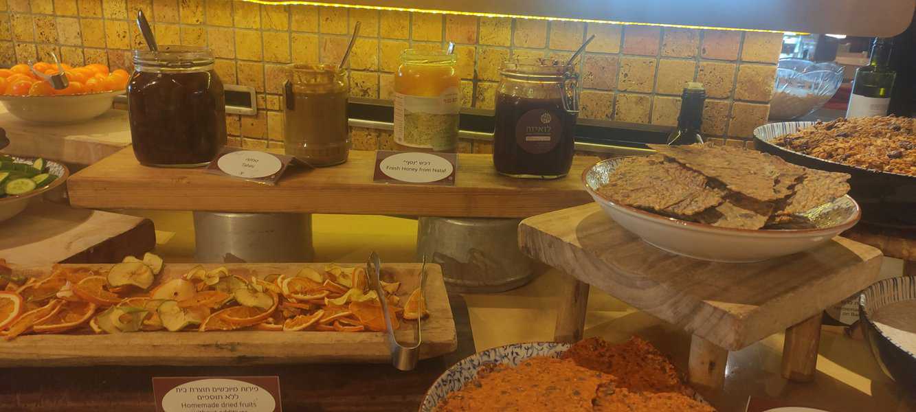 במזנונים יש שפע יצירתי, בריא ומשמח שלא תראו בשום מקום אחר – אגף המנות החמות, כולל למשל, מסבחה, גאלט פטריות וגבינה כחולה, מאפה פילו עם גבינות גאורגיות, קיגל ללא סוכר על בסיס דלעת, מאפה טבעוני על בסיס קמח חומוס ופטריות, סמבוסק מנגולד וחומוס ועוד. באגף הסלטים, תמצאו, לצד סלט פטוש רענן וסלט קלמנטינות ושומר, גם סלט תפוחי אדמה באטר עם קרם קשיו וסלט קינואה עם דלעת ערמונים. ומה עוד? יש פירות מיובשים ללא סוכר ופירות טריים, קרקרים נהדרים ללא גלוטן מקמח טף, מוצרי חלב וגבינות של מחלבות מקומיות, לאבנה טבעונית על בסיס בורגול מותסס ועוד. יש גם עמדה בה מוכנות ביצים בהזמנה אישית, ובר קינוחים מפתה במיוחד, עם גאלט תפוחים, פאי תפוחים ביין, טארפלס שוקולד מופלאים, עוגת גבינה ניו יורקית, קראמבל תפוחים טבעוני ועוד.